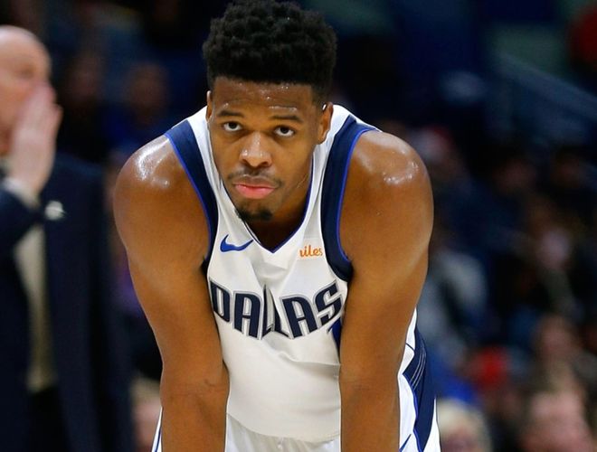 2018年圣诞大战对阵湖人,他在詹姆斯头顶完成一记势大力沉的单手隔扣,那张扣篮照片一度刷爆社交平台,所有人都以为独行侠找到了诺维茨基之后的新偶像。