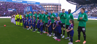 双方球员入场,教练相互致意,比赛即将开始